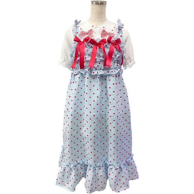 赤いハートのオーガンジー掛けワンピース