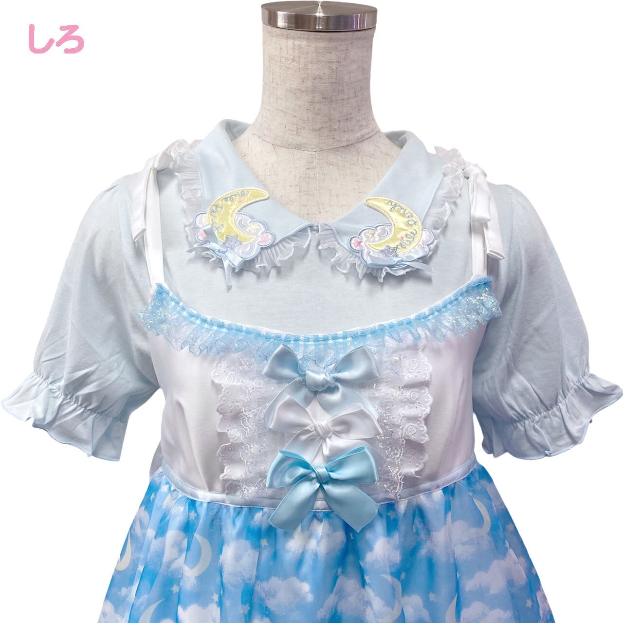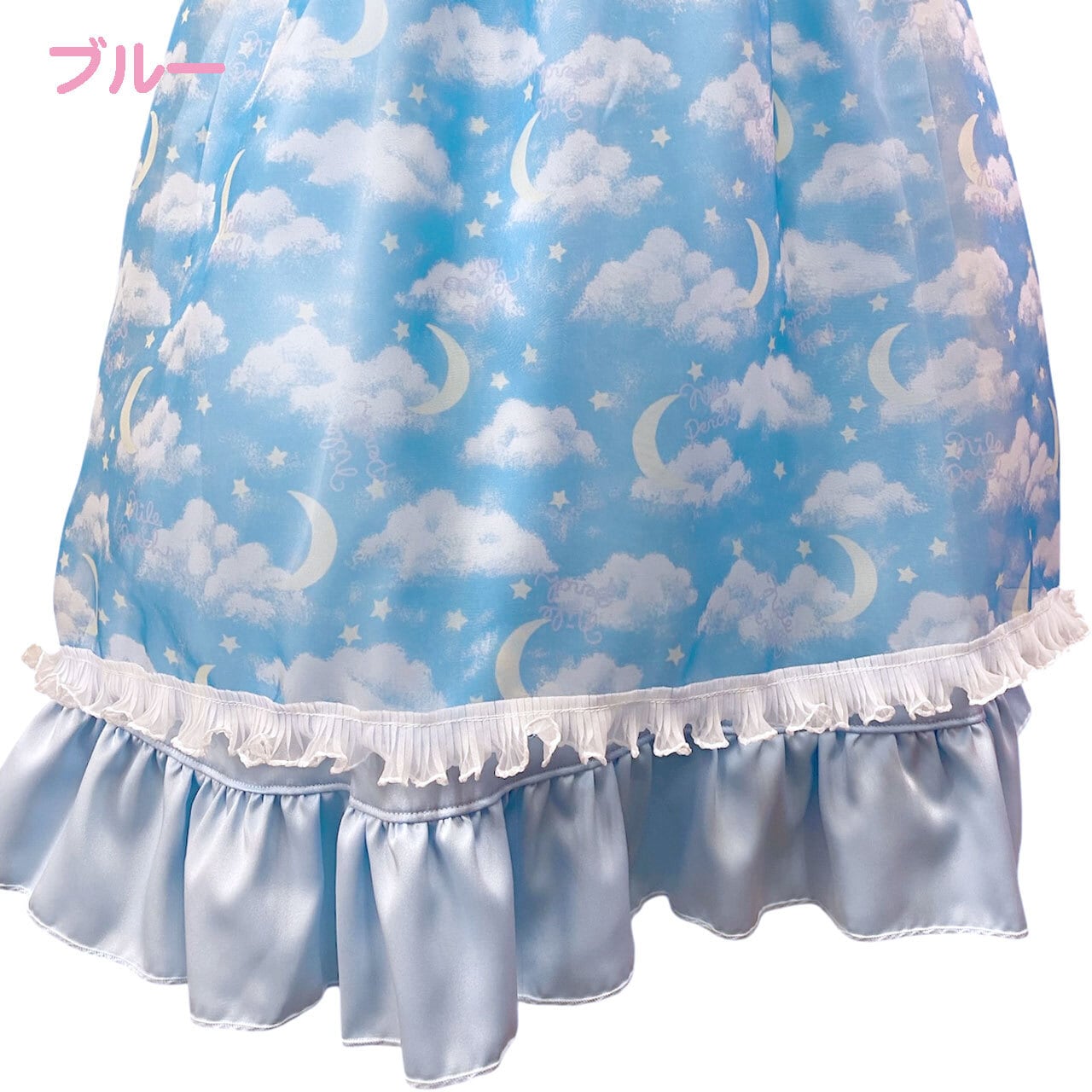 プリントオーガンジー掛け肩りぼんワンピース<夜空>