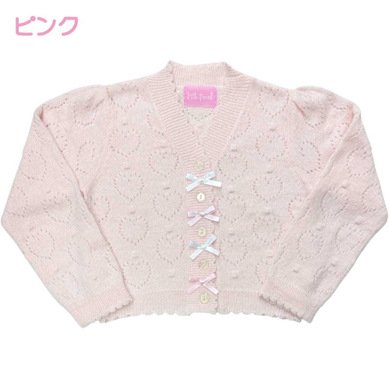 ふわふわモヘアのハート透かしカーディガン♪♪