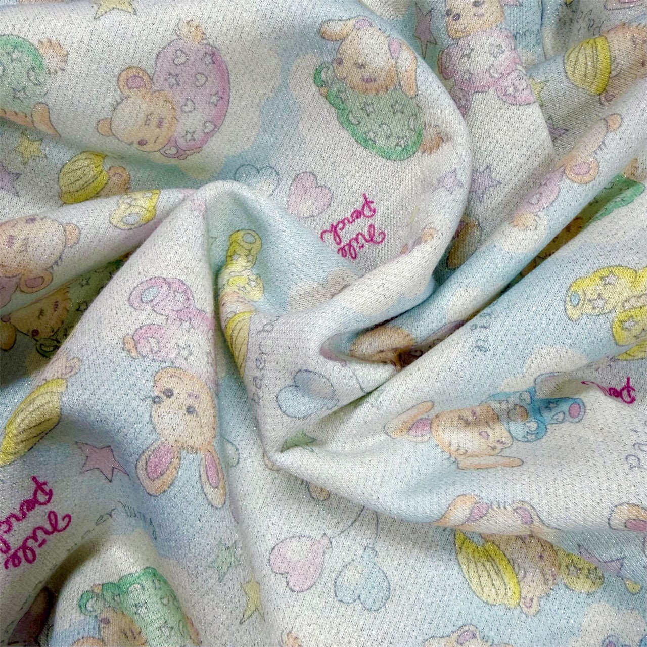 今回はラメ糸が編込まれた裏毛生地を使用しました。